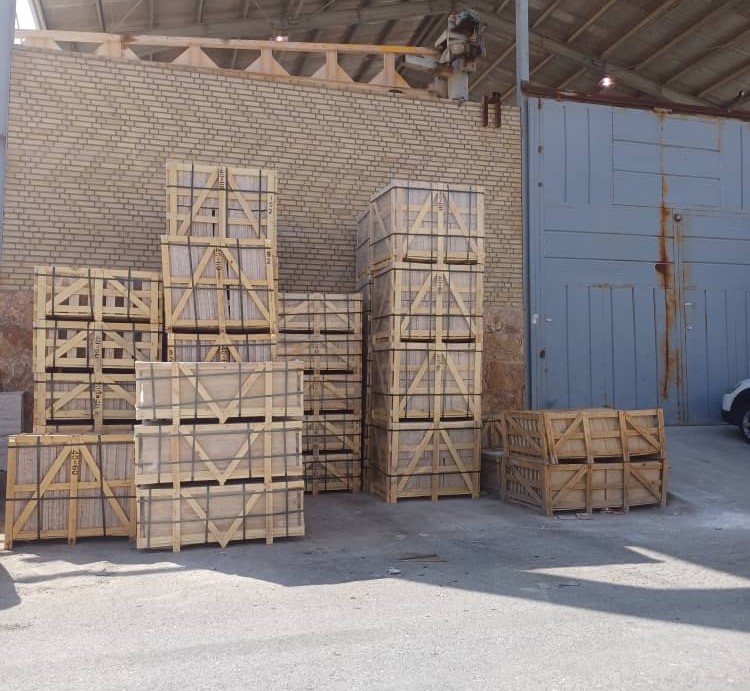 تُستخدم صناديق خشبية مخصّصة بمستوى تصديري من إنتاج فروادو لضمان سلامة الرخام أثناء النقل — من ساحة المصنع في أصفهان إلى المشاريع حول العالم.