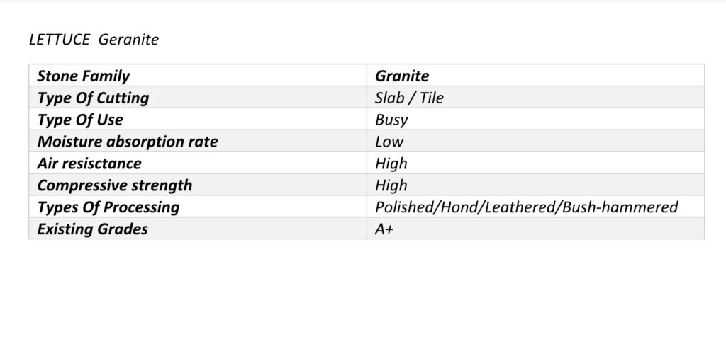 Granite lettuce has a green color background with white and lemon veins and is one of the strongest stones in Iran.